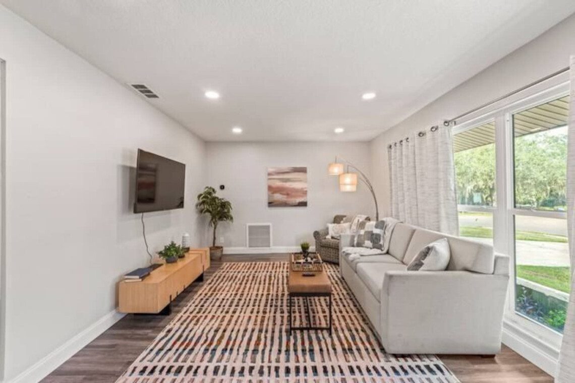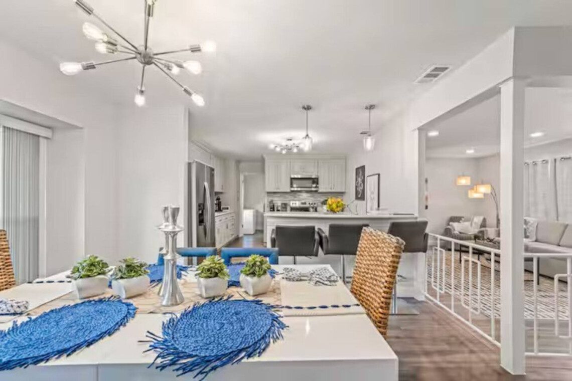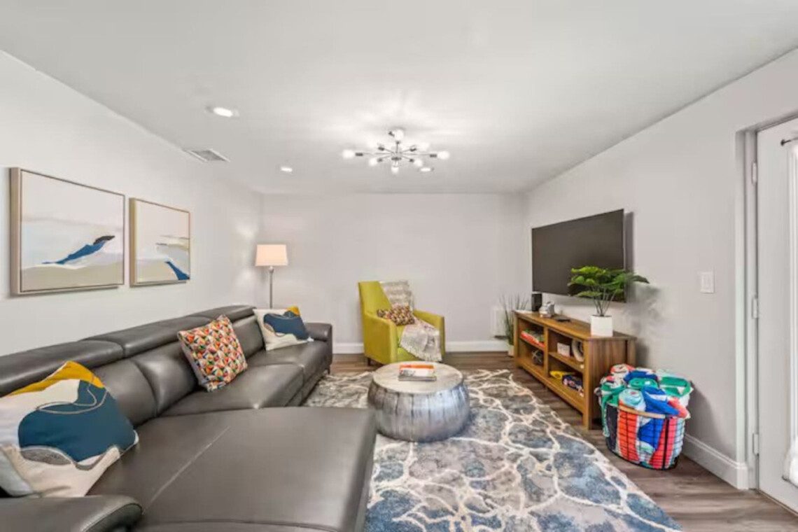 Sleep 12 in this oversized home with four king beds, two queens, TWO living rooms, a modern kitchen, and an enormous back patio with hot tub & pool!